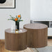 Imagine a quiet Sunday morning: a warm cup of coffee in hand, your favorite book, and a beautifully crafted round coffee table within reach.Made from MDF with walnut veneer and finished with a precise walnut + oak welt, this 2-piece nesting table set solves your space and style needs—use them as a coffee table, end table, side table, or even a footstool.