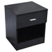 Upgrade your bedroom with the HAOYYE modern black nightstand. Designed with a sleek metal handle and a single spacious drawer, it combines functionality with a minimalist aesthetic. Crafted from E1 grade particle board, this table is sturdy and reliable. Its compact form makes it perfect for tight spaces, while the open shelf underneath adds versatility. Ideal for keeping essentials within reach, this cabinet is both stylish and practical for daily use.