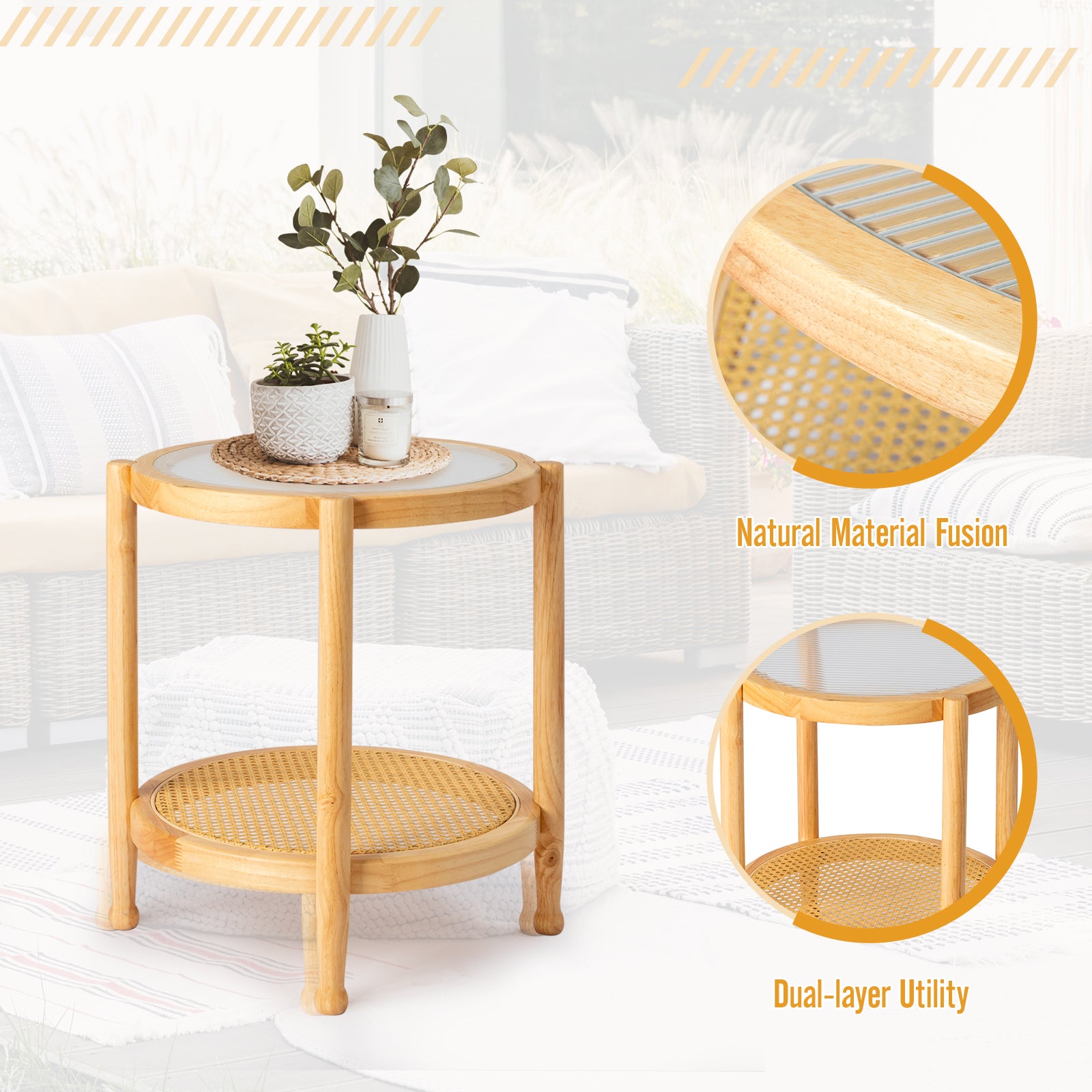 [Natural Boho Style] Hand-woven rattan shelf brings warm, earthy charm to any indoor or outdoor space with authentic craftsmanship.