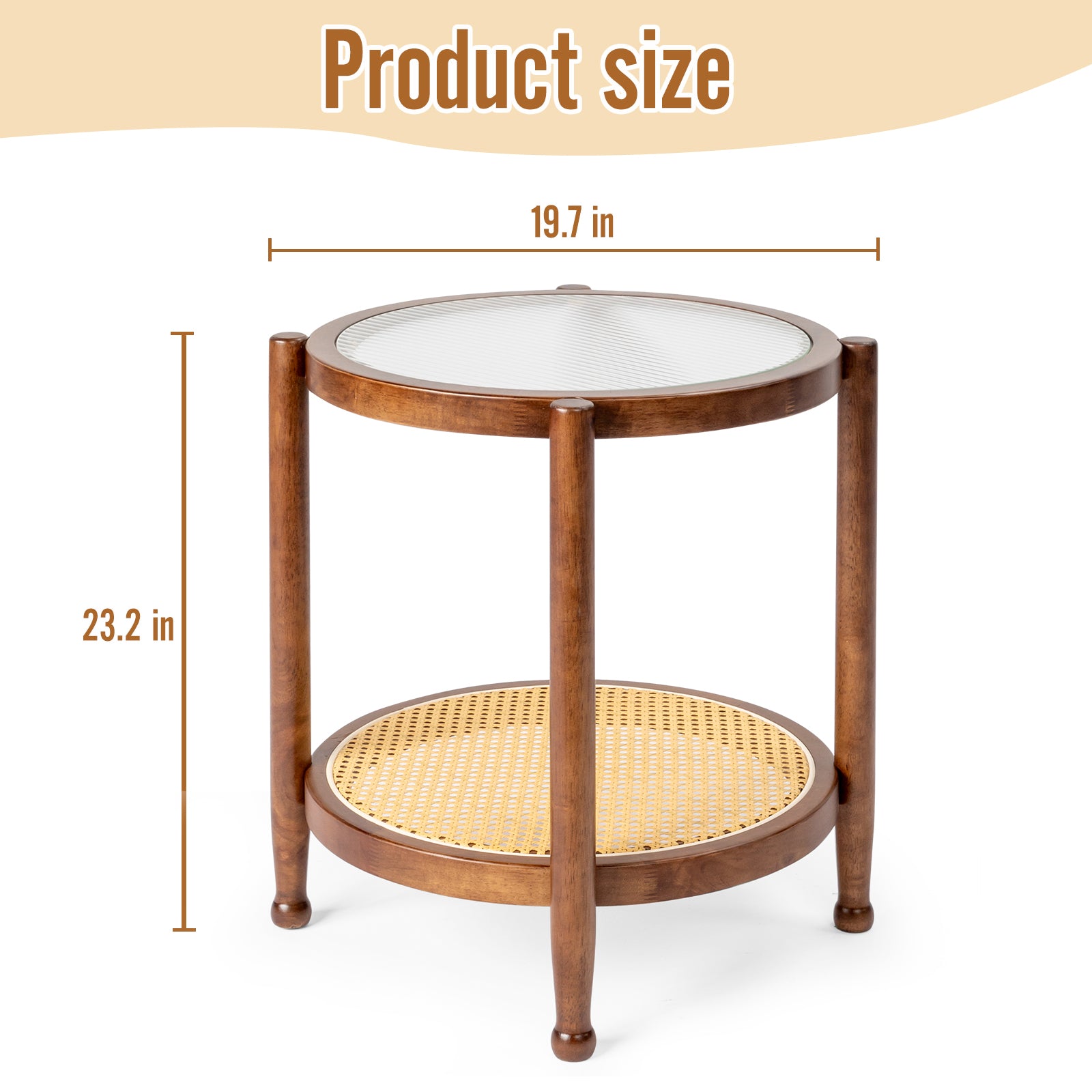 Elevate your space with the artistic water ripple tempered glass top that combines durability with sophisticated style, while the hand-woven rattan shelf below adds natural boho charm and functional storage for books or decor.