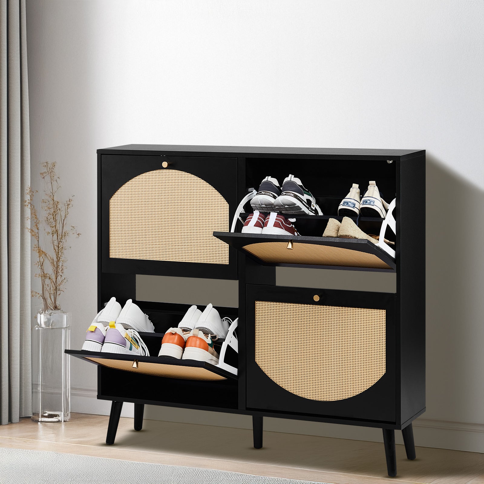 Keep your entryway organized with this dual-tier shoe cabinet featuring two flip-top compartments for efficient shoe storage.