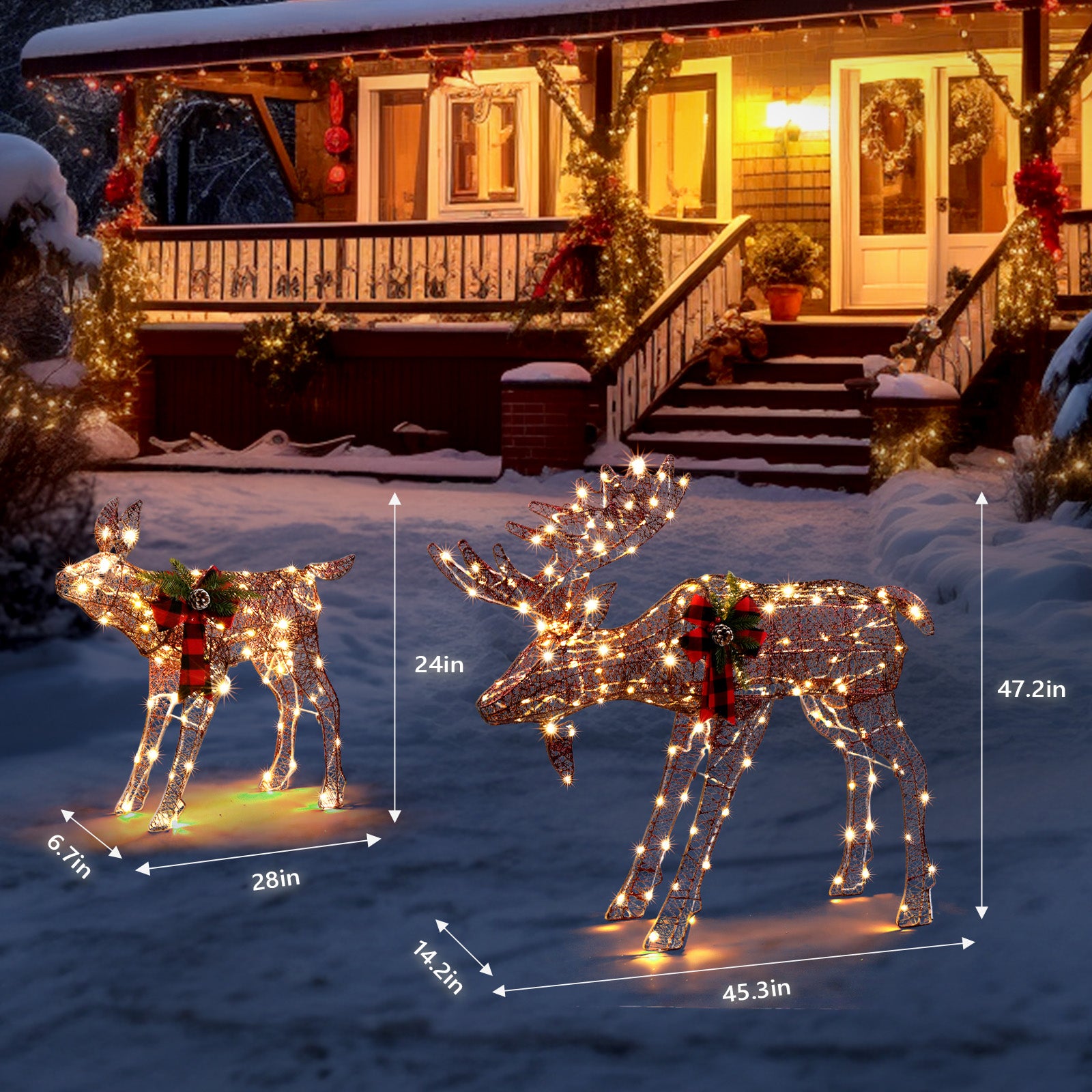 Equipped with 200 energy-efficient LEDs, these moose decorations shine beautifully at night, delivering a soft warm glow that elevates the festive spirit indoors or outdoors.