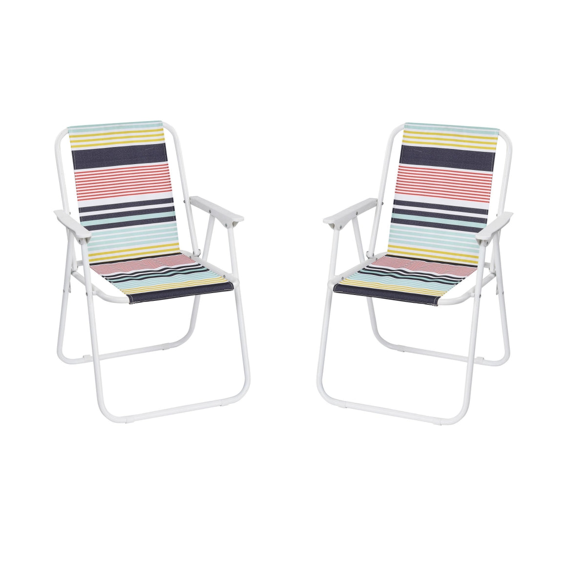 The sturdy iron frame can support up to 220 lbs, ensuring durability and stability. The colorful stripe pattern and elegant white frame add a touch of style to your outdoor gear, while the easy-folding design makes these chairs perfect for quick transport and storage. Whether you're relaxing by the beach or camping in nature, these chairs offer comfort and functionality wherever you go.