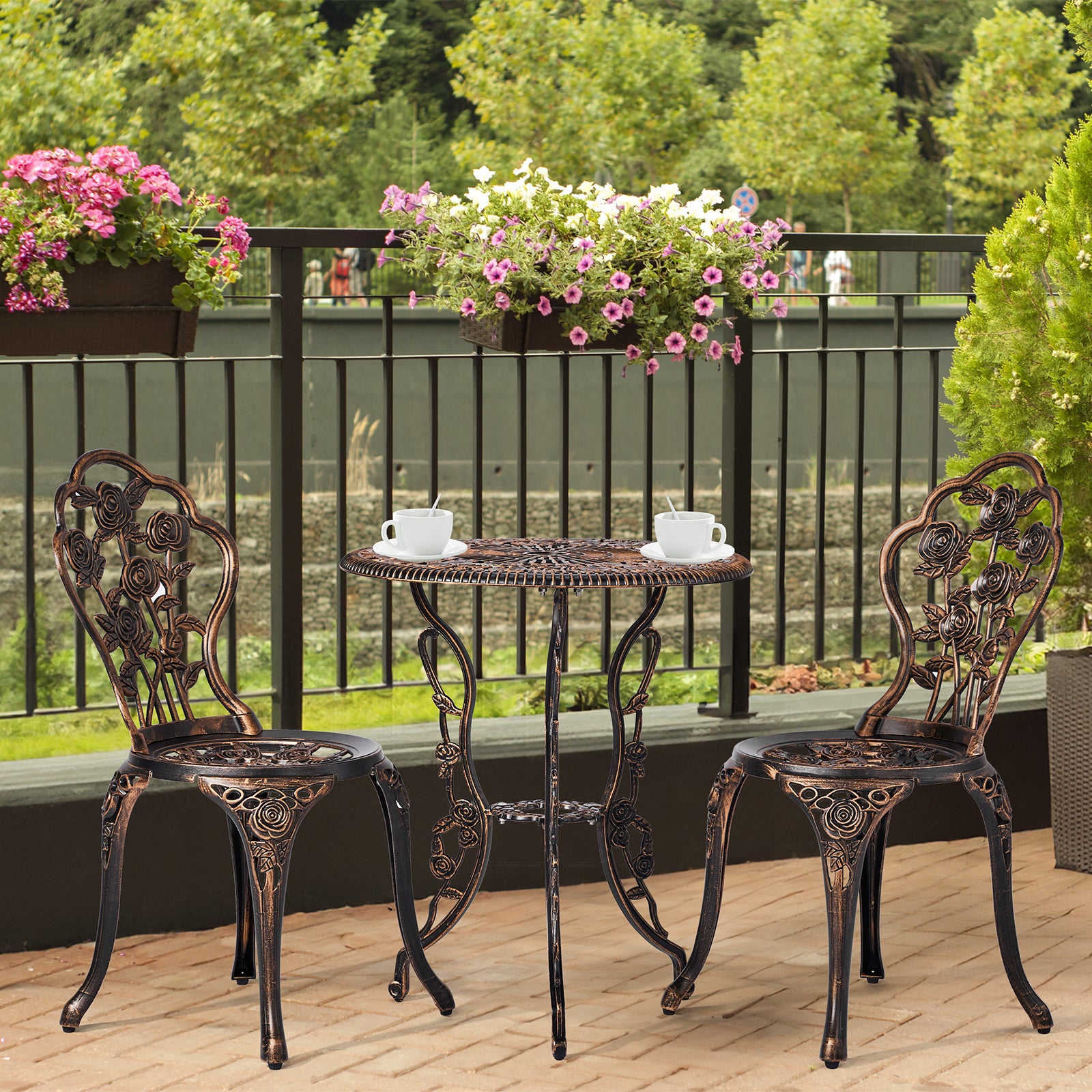 Built from durable cast aluminum and secured with stainless steel screws, this bistro set withstands rust, corrosion, and year-round weather exposure. Cleanup is a breeze with a simple wipe down, offering low-maintenance elegance for outdoor spaces.