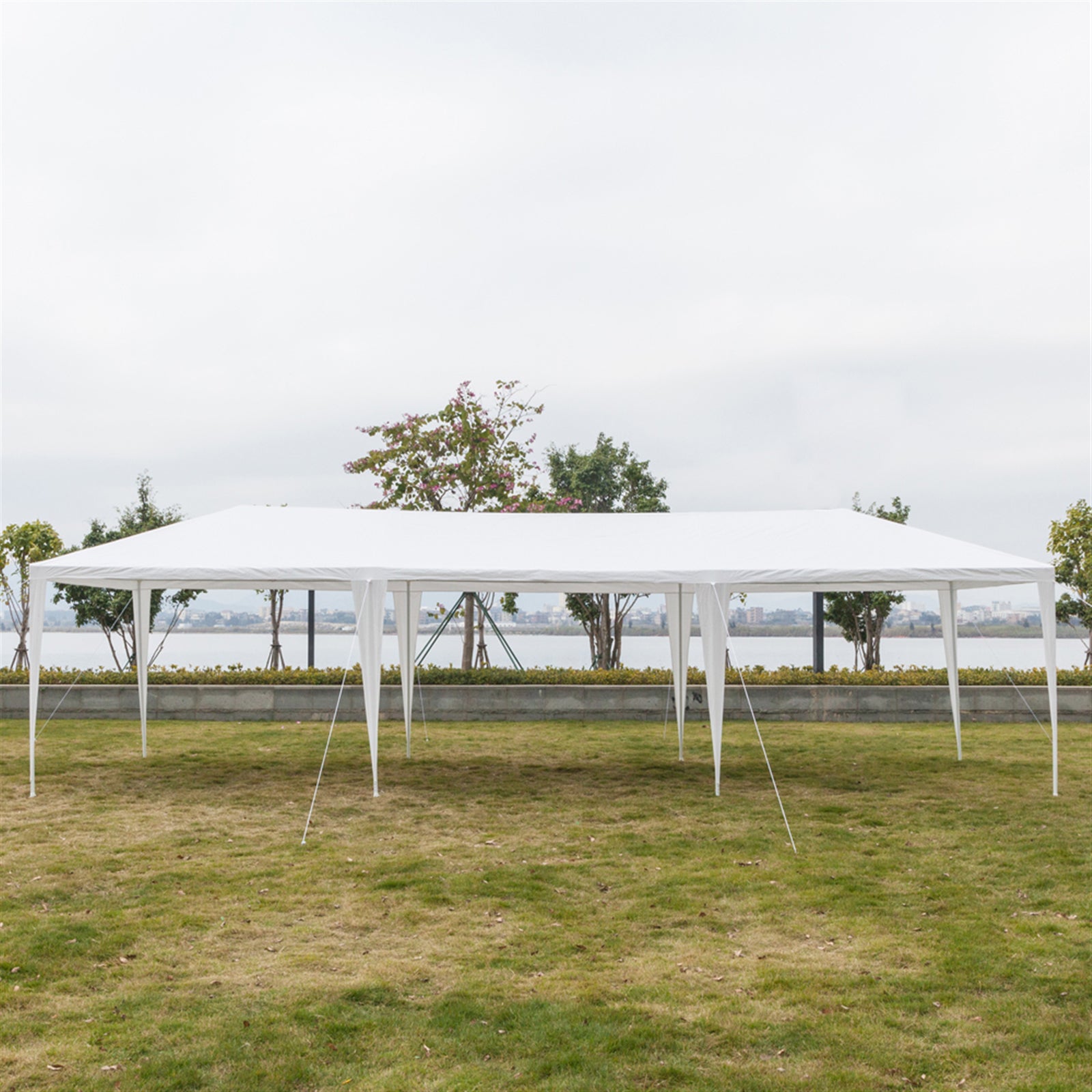 Create a professional-grade outdoor venue with the HAOYYE 10x30ft white waterproof tent. Its unique 5-sided design and heavy-duty PE canopy make it the perfect choice for temporary use at weddings, exhibitions, flea markets, or backyard events.