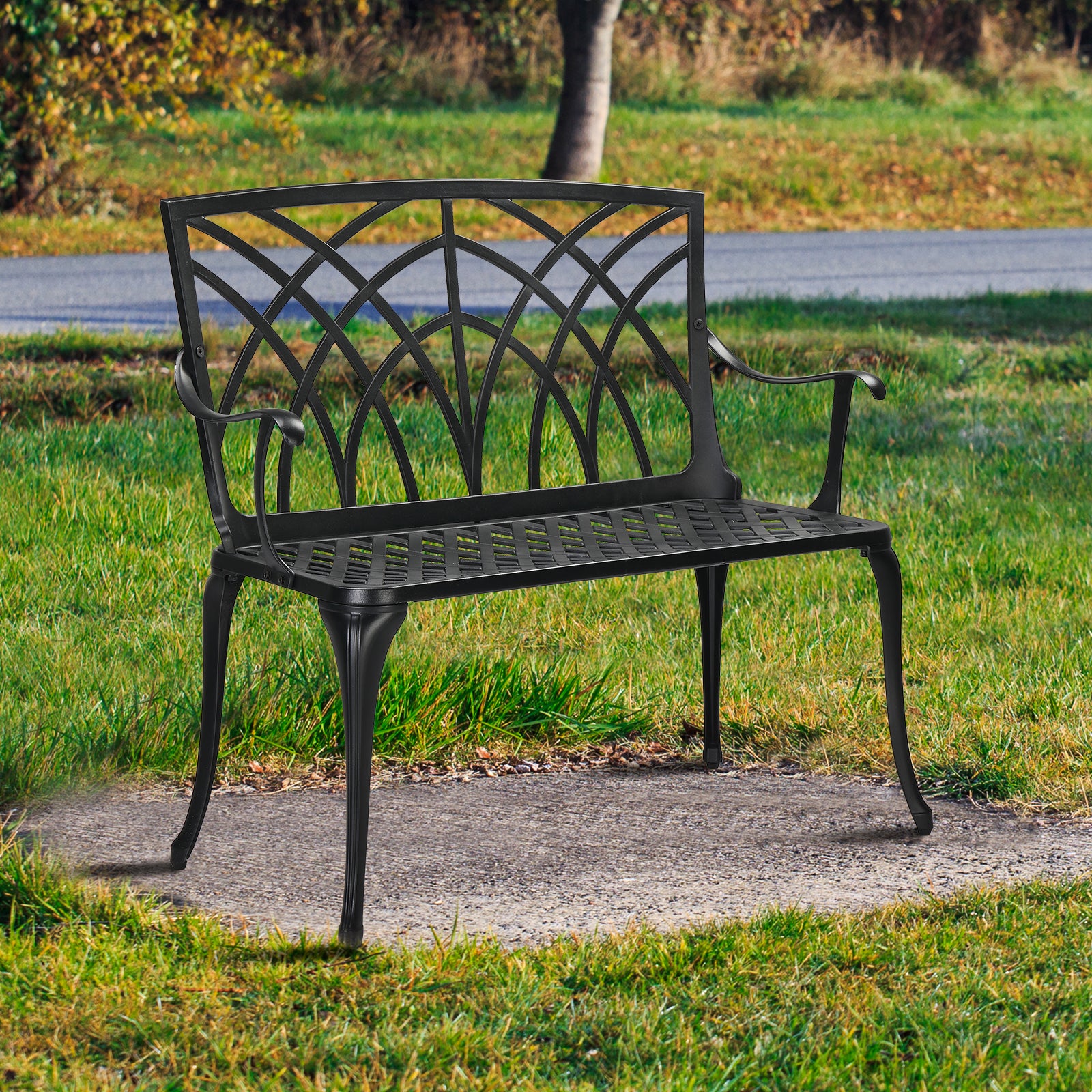 Constructed with powder-coated aluminum, this bench offers long-lasting durability and easy maintenance, making it perfect for any outdoor setting.