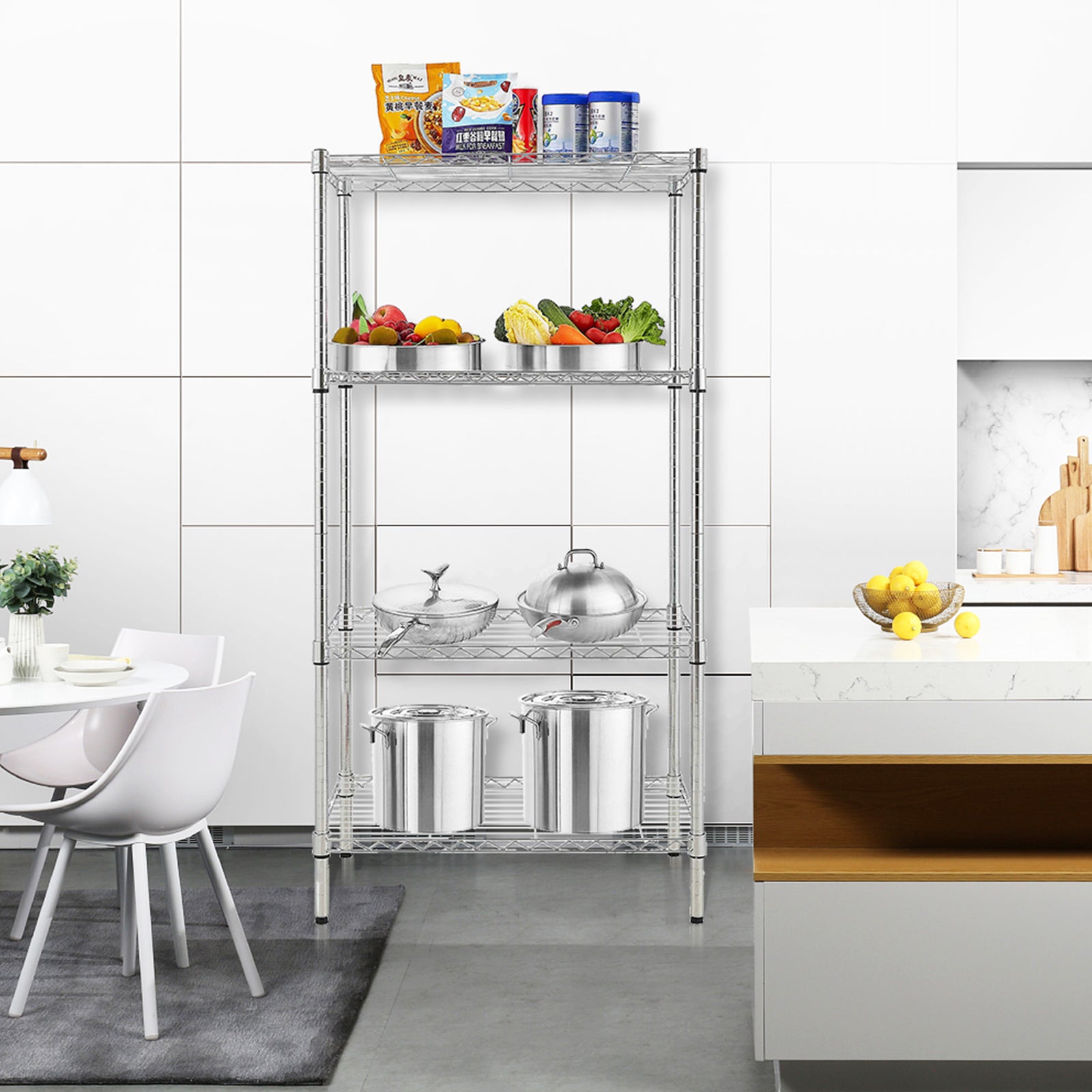 Made from chrome-plated carbon steel, this four-tier shelving unit is built to handle heavy-duty storage needs. Its sturdy construction ensures strength and durability for years of reliable performance.