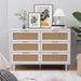 The dresser features a sleek white color combined with natural rattan drawer fronts, offering a fresh and minimalist look. Its simple yet spacious design provides an elegant storage solution for your home.