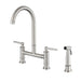 Upgrade your kitchen with the Haoyye bridge faucet—featuring dual handles and a matching side sprayer for added convenience.