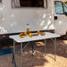 With a sleek, elegant appearance and practical folding capabilities, this table is the perfect space-saving solution for any outdoor setting.
