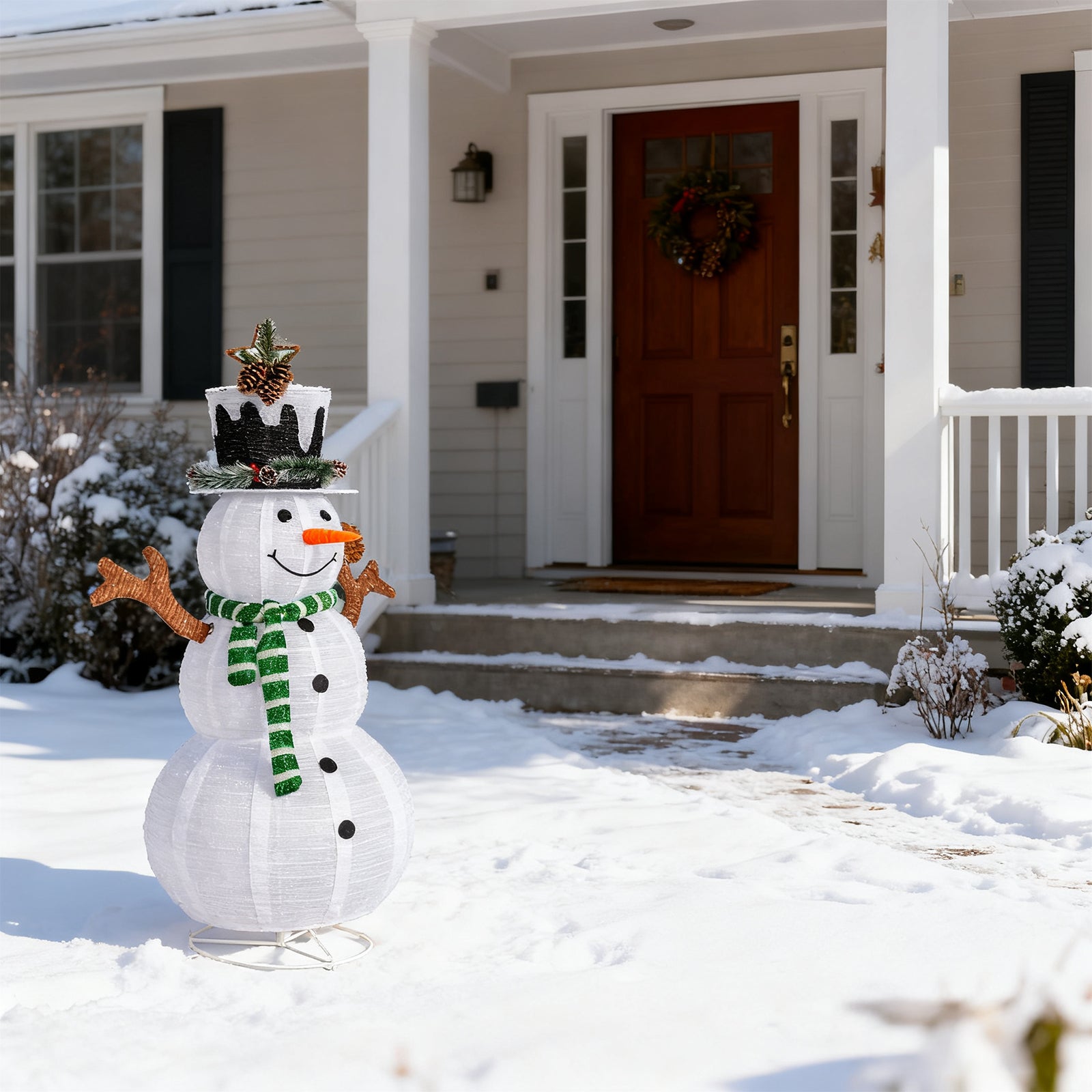 Pre-lit with strategically placed white LED lights, this snowman glows softly at night, illuminating your yard, patio, or indoor space and creating a magical holiday ambiance.