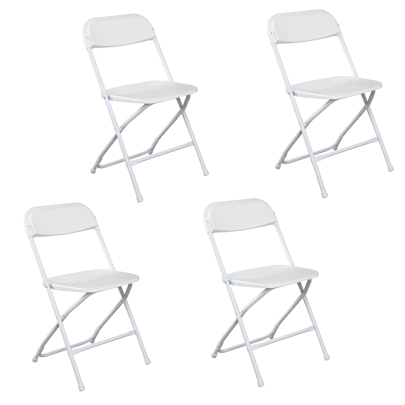 This set of 4 plastic folding chairs is designed for durability and comfort, with a high weight capacity of up to 350 lbs. Made from heavy-duty plastic and metal with powder coating, these chairs are built to last, even in demanding environments like parties, offices, schools, and picnics.