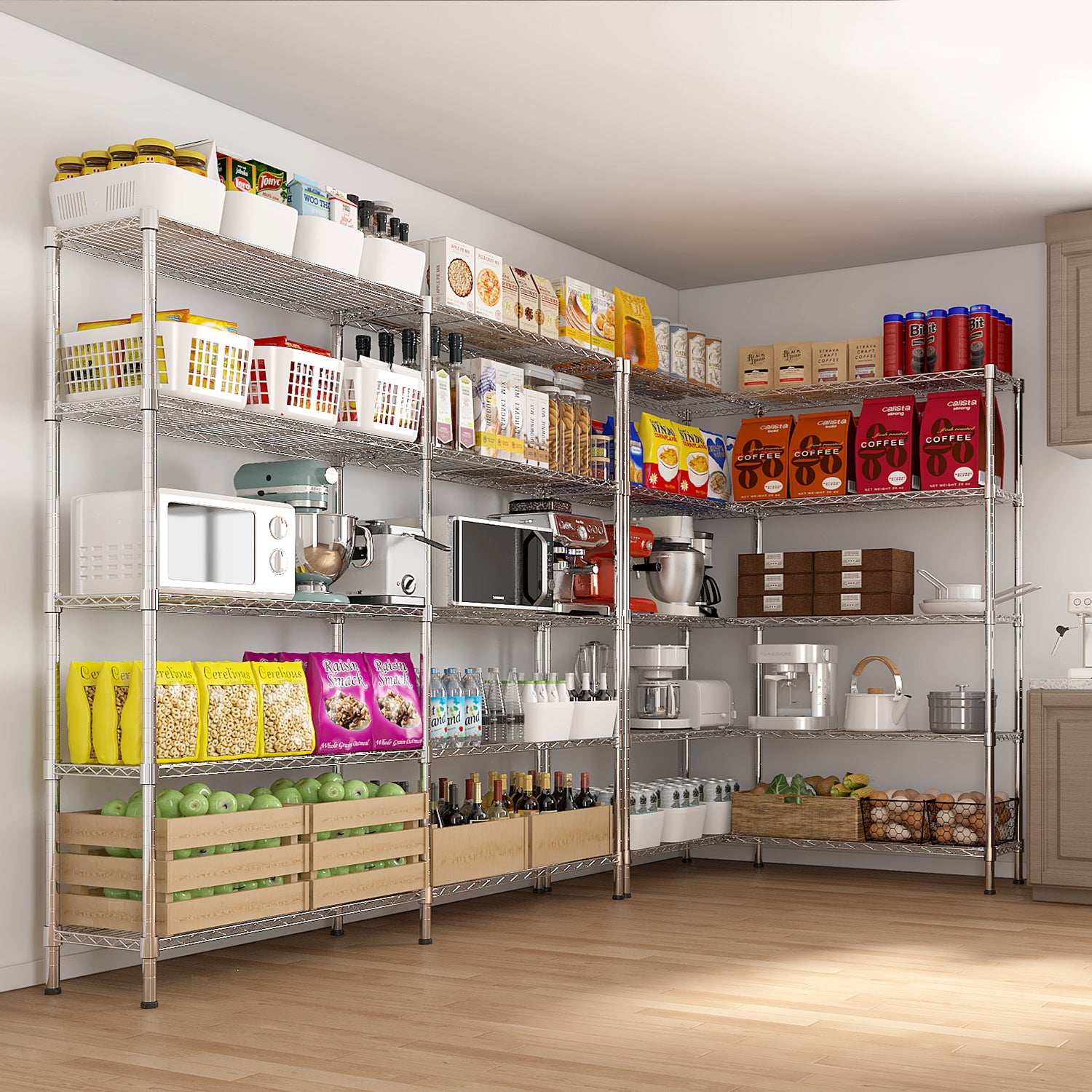 This 5-tier double-row chrome shelf is the perfect solution for keeping your home, office, or retail space neatly organized.