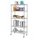 Built with ultra-durable steel wire, this shelving unit supports heavy-duty storage needs in homes, garages, offices, and restaurants.