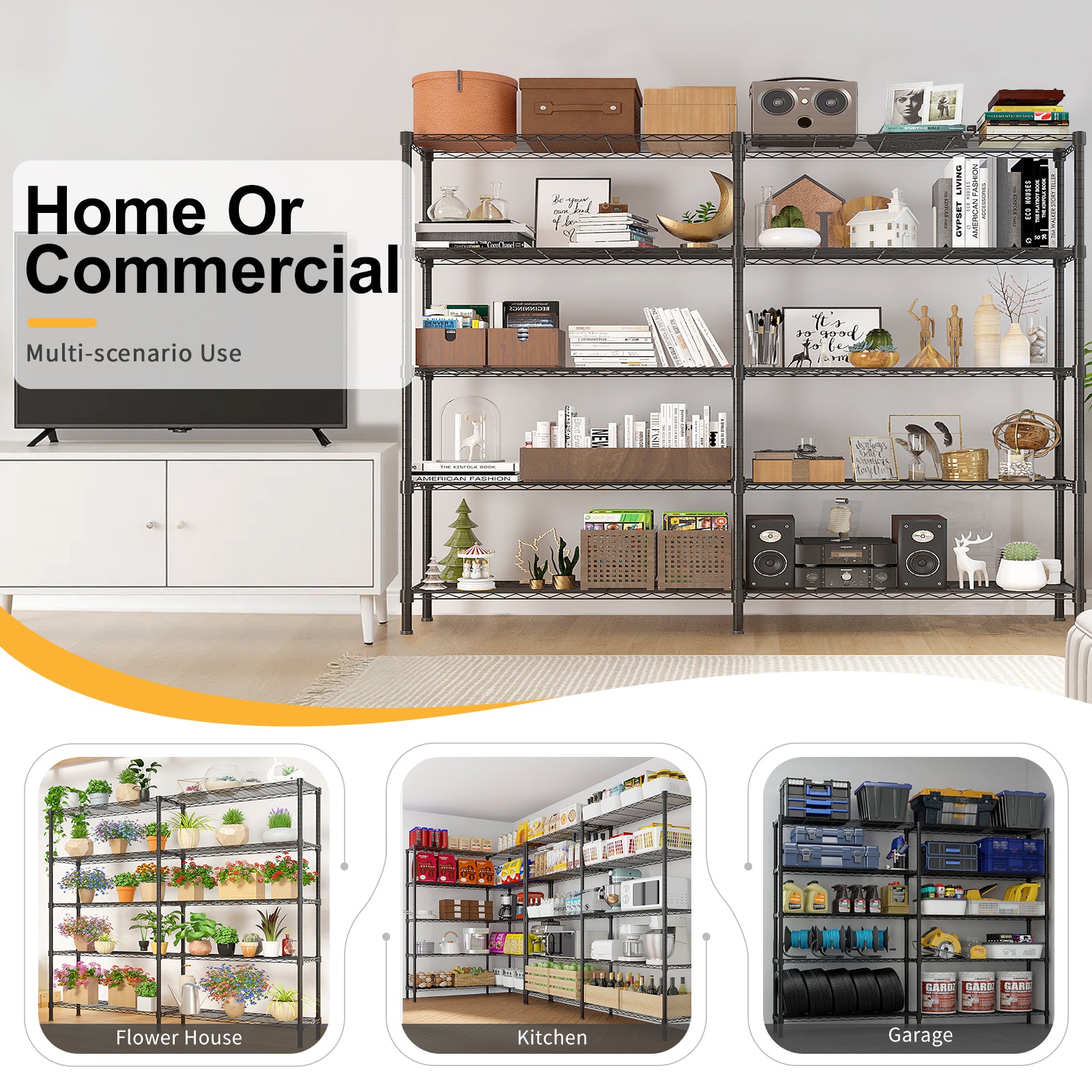 This HAOYYE 58-inch wide wire shelving unit offers double the storage space to help you organize large or bulky items effortlessly in any room or commercial space.