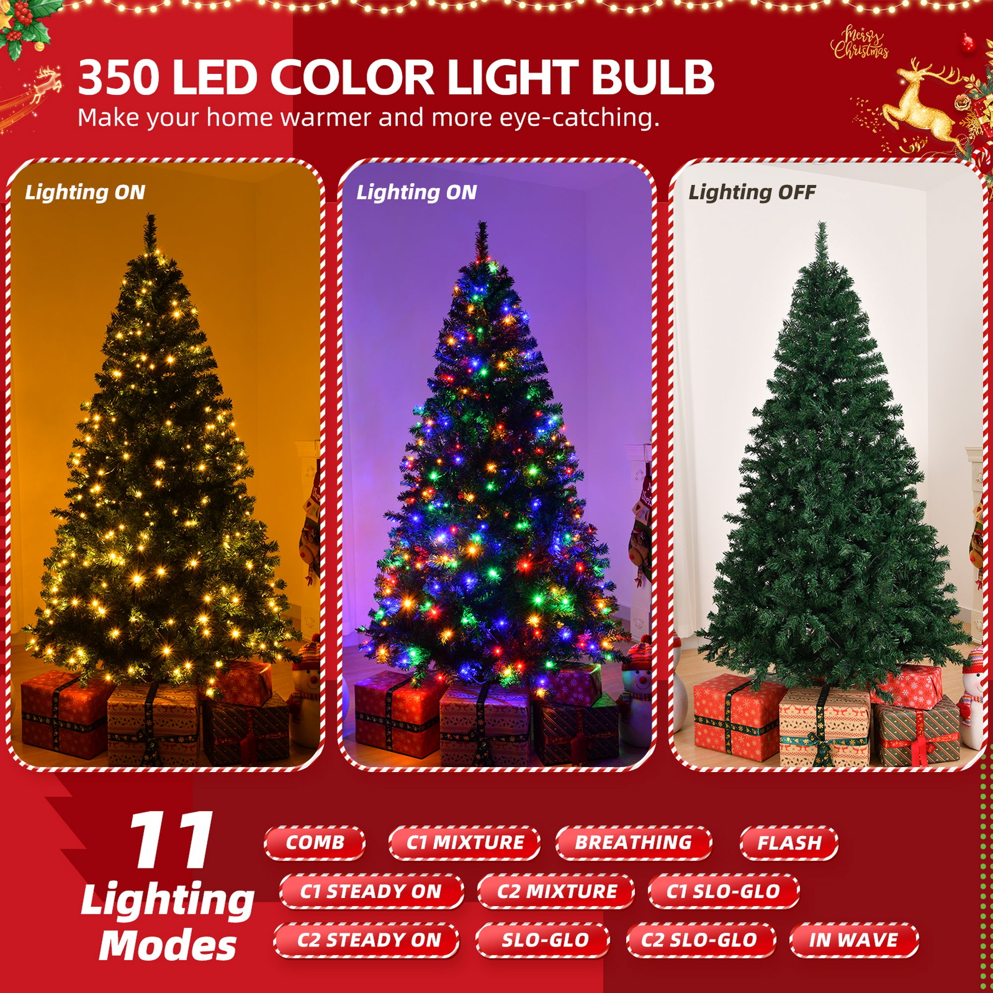 Easily set the perfect holiday mood with pre-installed warm white and 4-color LED lights and 10 dynamic lighting modes, all adjustable via the included remote control.