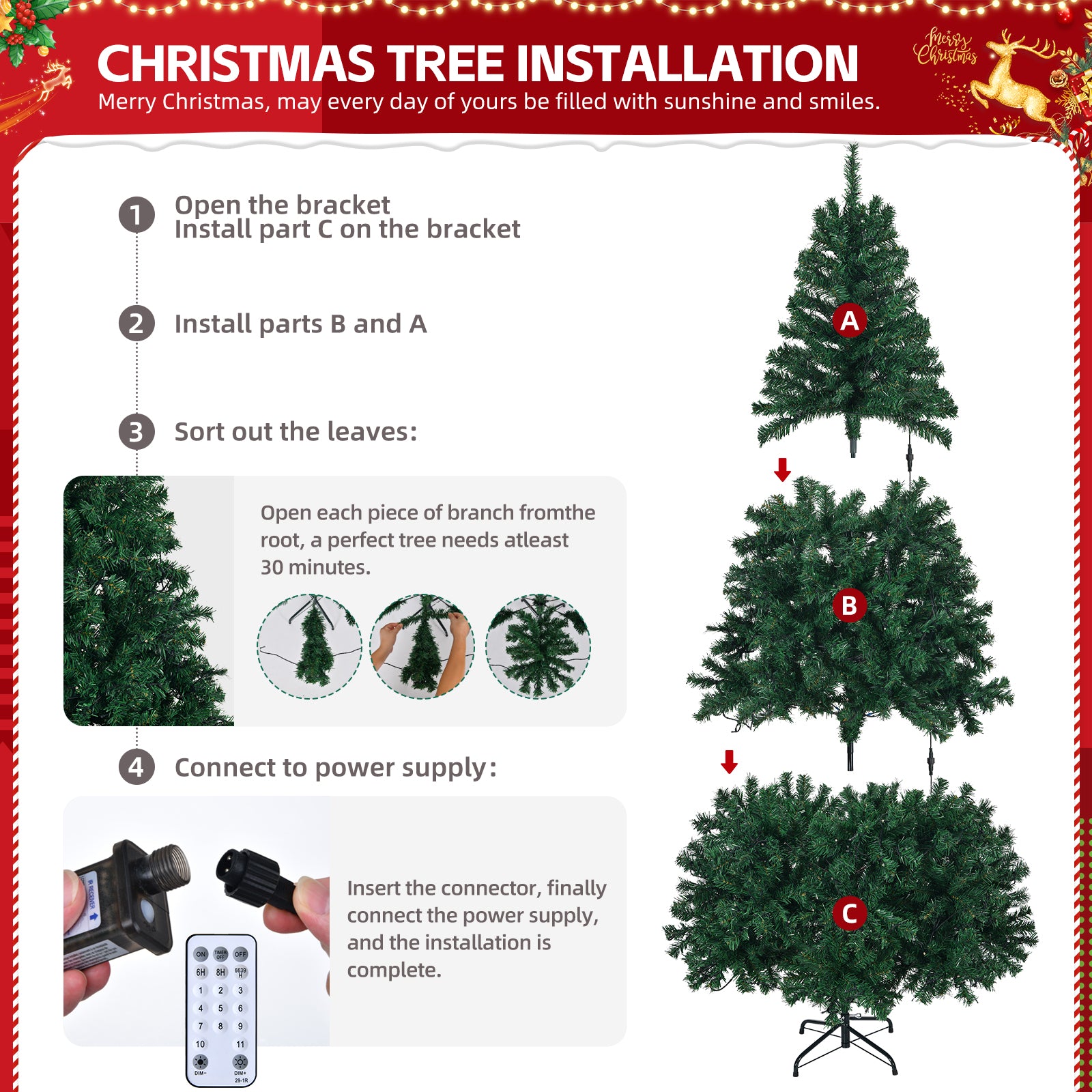 Durable flame-retardant PVC branches and a reinforced metal stand ensure long-lasting stability and support for all your favorite ornaments.