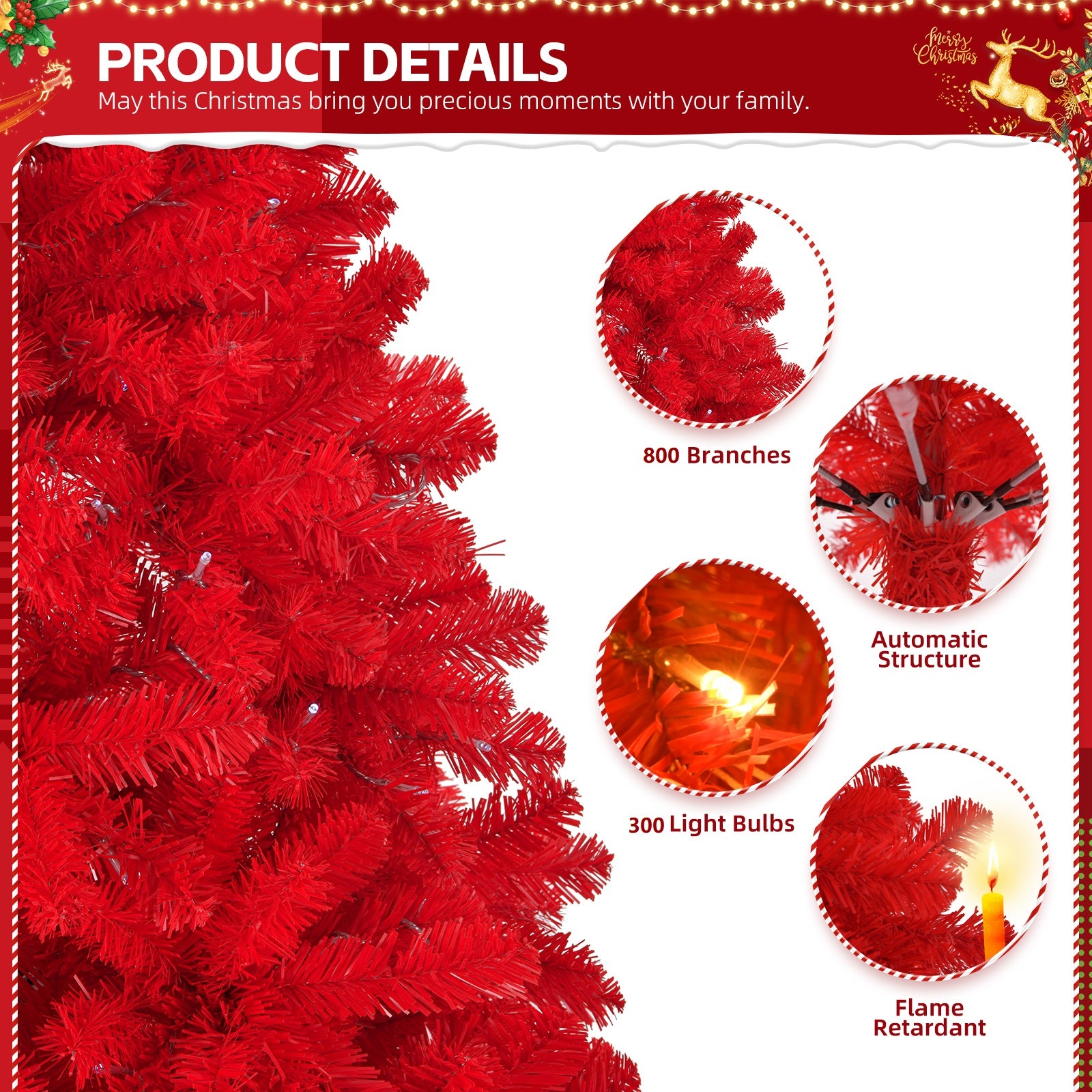 Transform your space into a festive holiday haven with this vibrant red pre-lit Christmas tree, perfect for living rooms, entryways, or office spaces.Enjoy a full, lush appearance with 800 branch tips that mimic the natural beauty of a real pine, creating a stunning centerpiece for your holiday décor.
