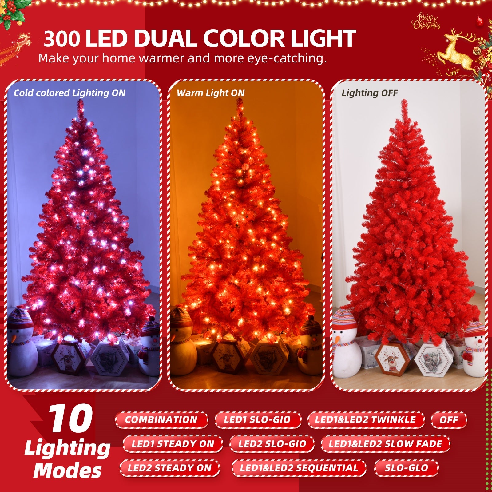 Pre-installed 300 LED lights offer warm and cool white options, 10 dynamic lighting modes, and stepless dimming for personalized holiday ambiance.