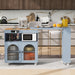 Made from high-quality MDF and rubber wood, this kitchen island offers stability and long-lasting performance. The smooth rubber wood top resists stains and water, making it easy to clean and maintain.