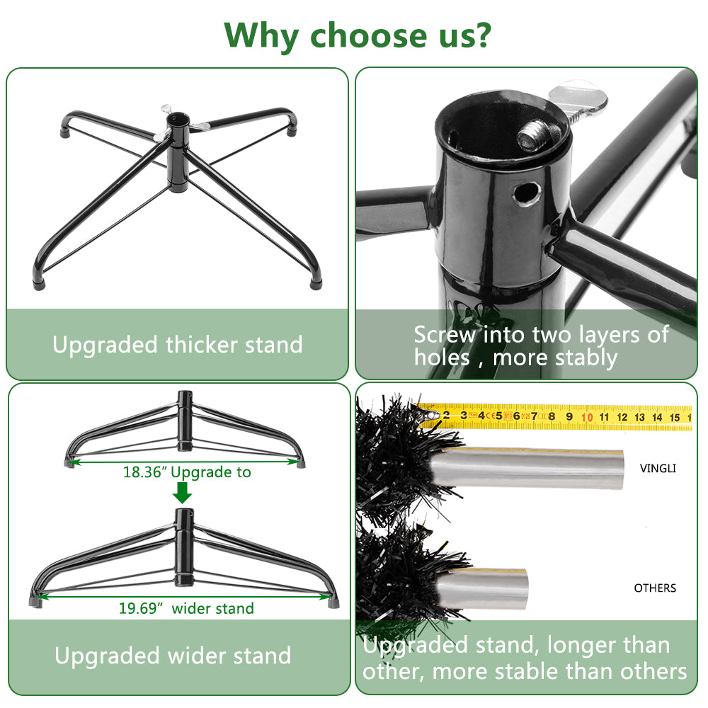 Durable metal base and reinforced iron structure keep the tree stable, supporting ornaments securely throughout the holiday season.