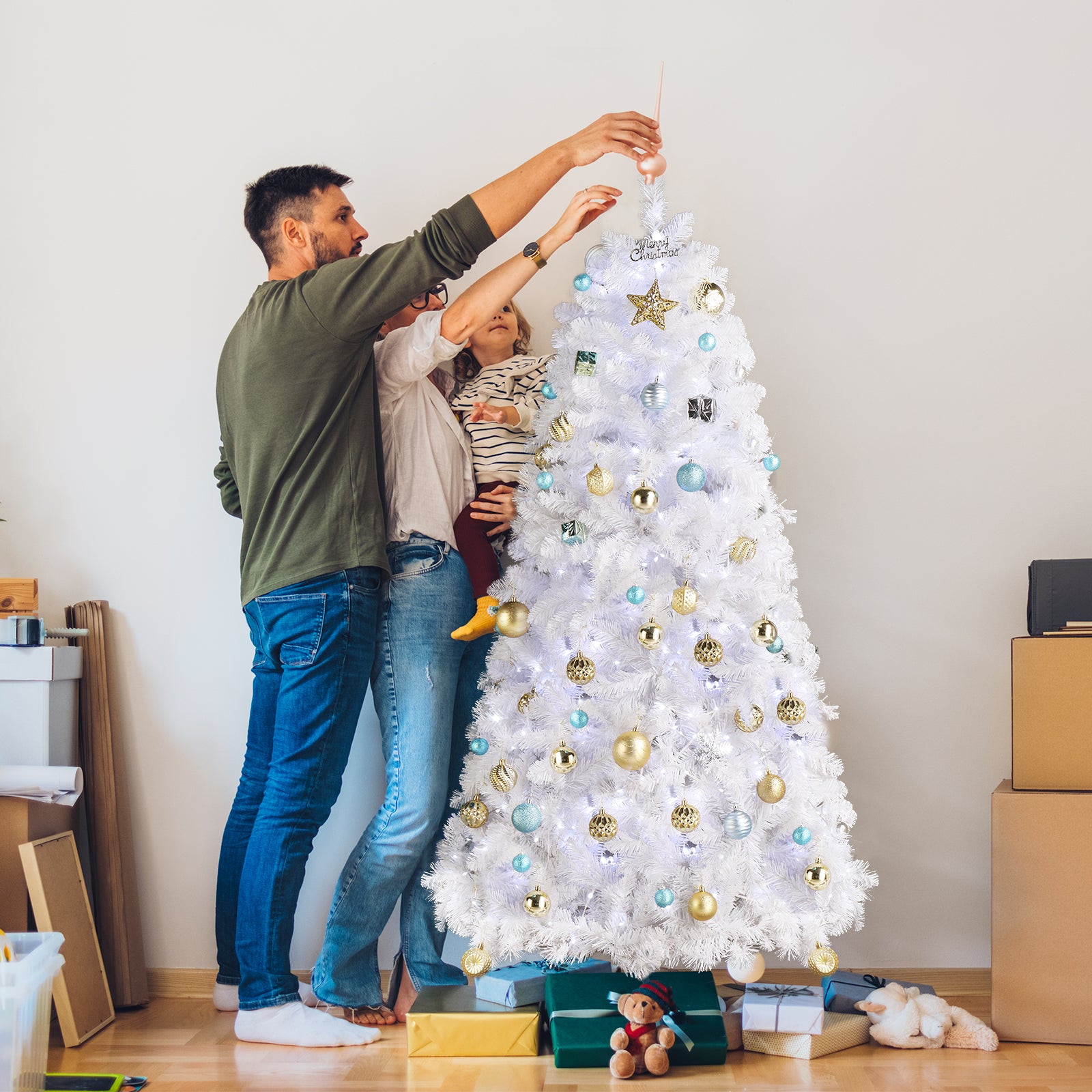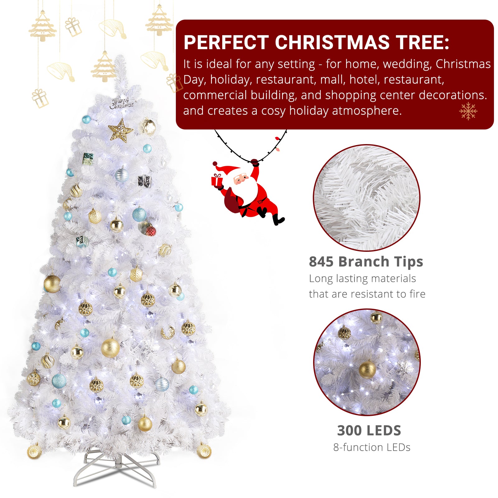 Bring holiday magic to your home with this 6FT white artificial Christmas tree featuring 845 lush PVC branches, perfect for creating a full and festive centerpiece.