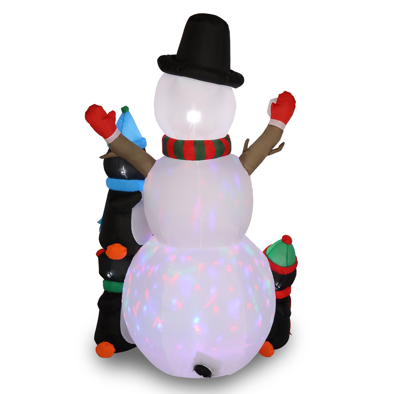 Bring a warm Christmas atmosphere to your yard or garden with this 6 FT inflatable snowman and three penguins, creating a cheerful holiday display.