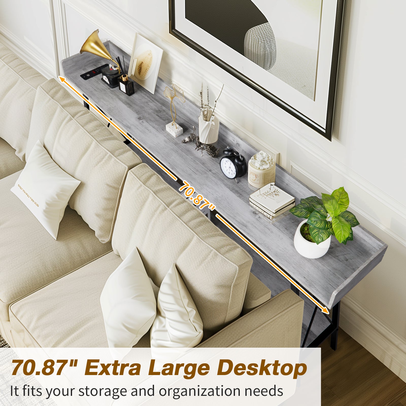 At 70.9 inches long, this slim console table fits perfectly behind large sectional sofas or along narrow hallways. It can be used as a decorative display, bar area, or extra dining space in any room.