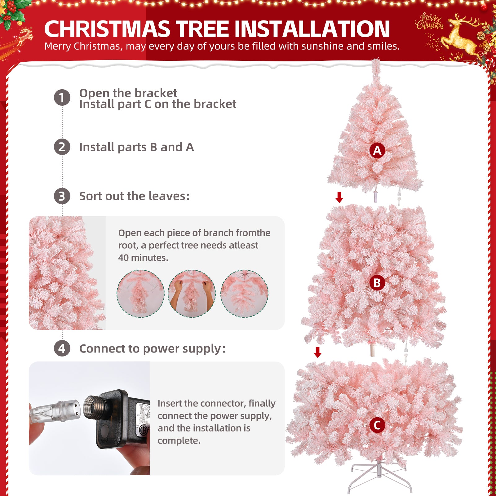 Whether for traditional or modern décor, this snowy pink Christmas tree adds a unique, eye-catching festive touch to any space, creating cherished memories year after year.