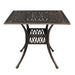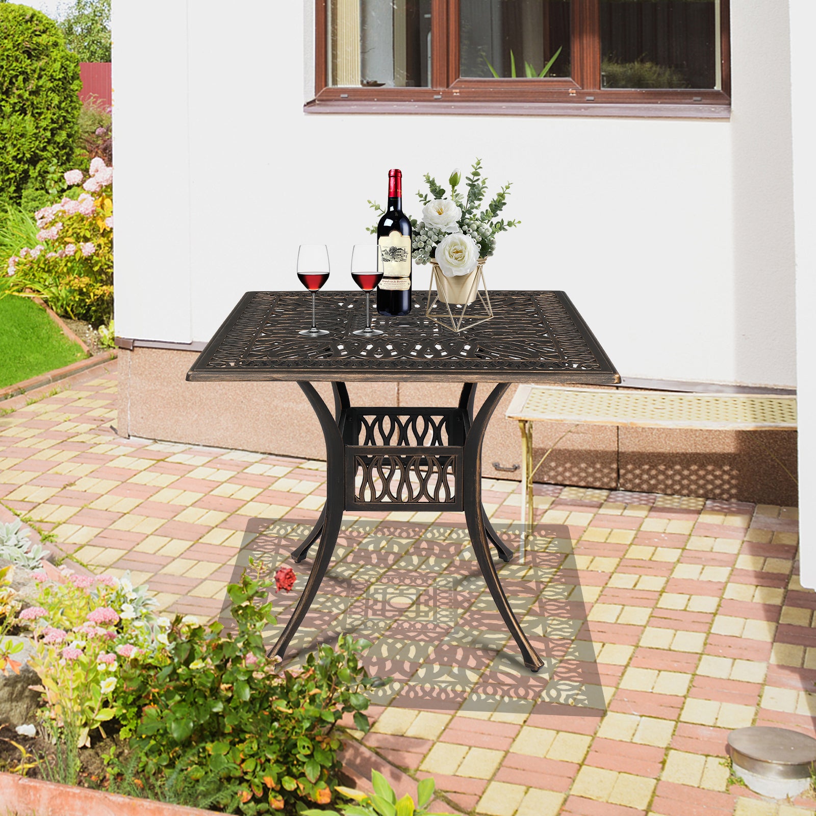 Enjoy a peaceful afternoon outdoors with this elegant bronze cast aluminum table—perfect for coffee, meals, or casual conversations in your garden or on the patio.