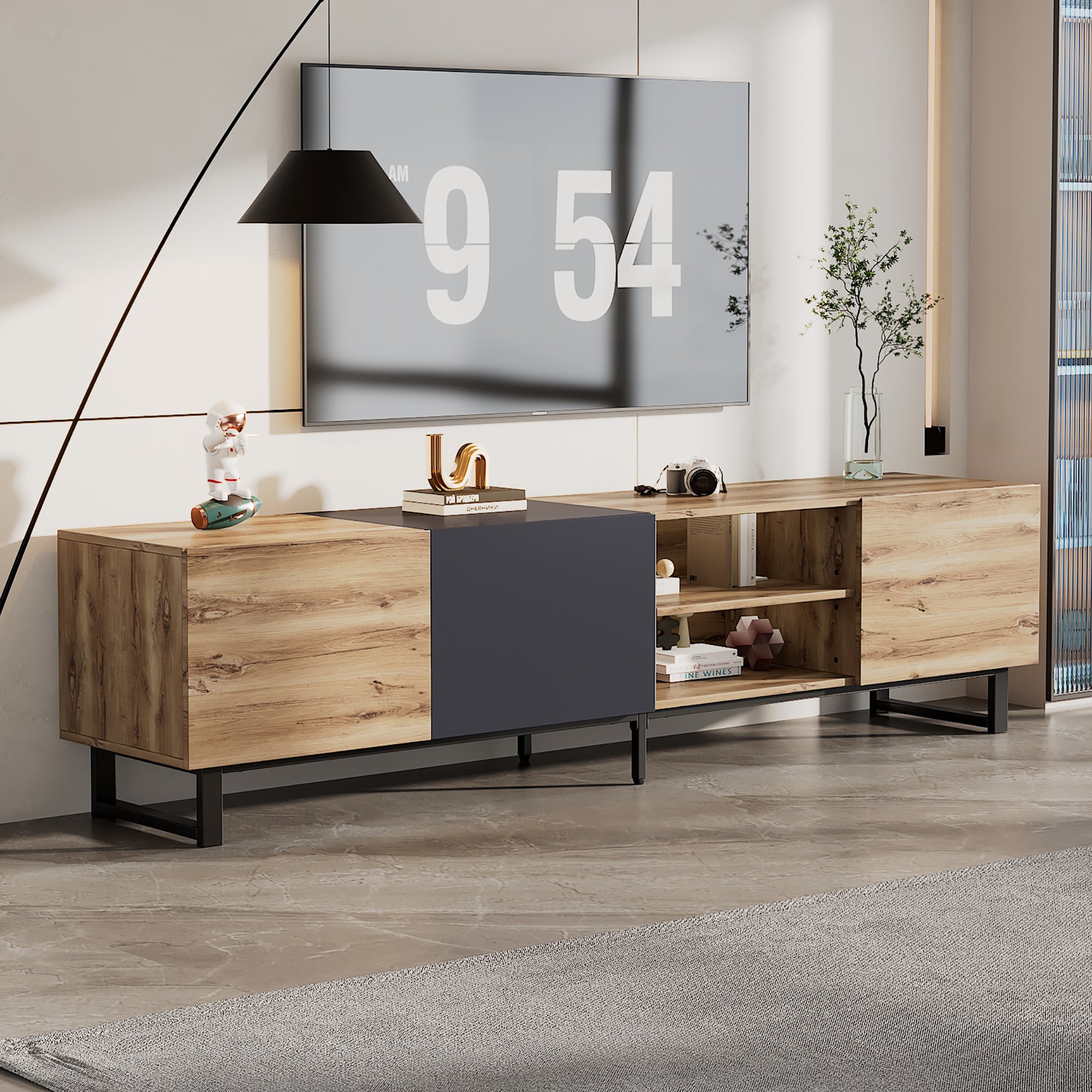 With its stylish color matching design, this TV cabinet blends simplicity with a touch of elegance. Its sleek, minimalist look makes it a great fit for modern decor, while also seamlessly complementing a variety of other interior styles. A versatile piece that elevates any space!