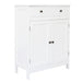 This contemporary double-door cabinet is made from high-quality, hard MDF board that is waterproof and moisture-resistant for long-lasting use.
