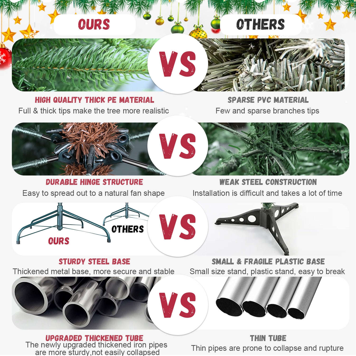 This artificial Christmas tree features eco-friendly, fire-resistant PE/PVC material, ensuring safety and lasting holiday enjoyment.
