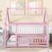 Transform your child’s room into a cozy, imaginative space with the Full Size Floor Wooden Bed with House Roof Frame.The playful pink wooden frame with a house-shaped roof and fence guardrails creates a safe, fun environment where your child can explore their creativity.