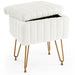 Designed with a strong metal frame and gold-painted legs, this stool offers dependable stability and a modern look. The triangular leg installation and anti-slip feet ensure reliable support on any floor surface, with a weight capacity of up to 200 lbs.
