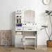 The sturdy design comes complete with an upholstered stool for comfortable seating, and detailed step-by-step instructions make assembly straightforward, allowing you to quickly set up your new vanity table and start enjoying it right away.