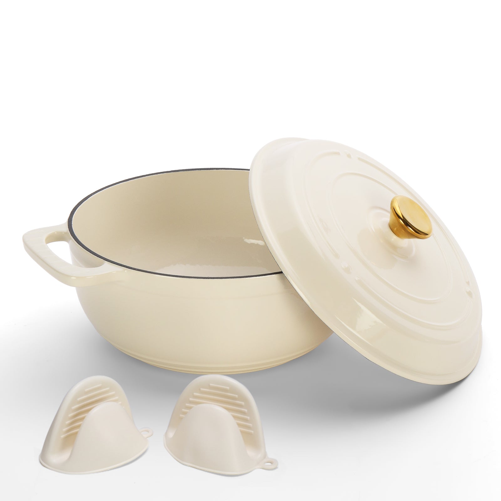Compatible with ovens, gas stoves, induction cooktops, and grills. Perfect for frying, baking, stewing, and boiling. Double-sided heat-resistant handles with textured grips and included silicone gloves make handling safer and easy.