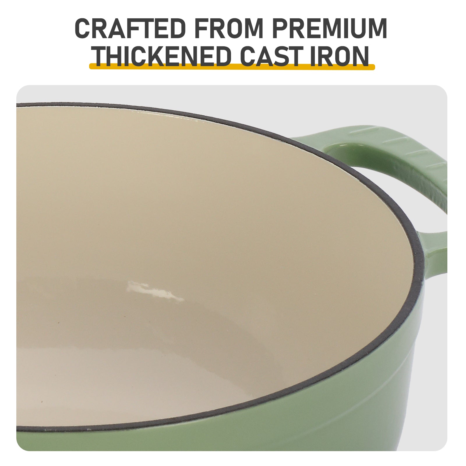 Made from thickened cast iron weighing 14 pounds, this 6 QT pot features a double-layer enamel coating with a high-gloss exterior and non-stick interior. Wide, stable base prevents tipping, ideal for 4-6 person households. FDA-certified enamel ensures safe and reliable cooking.