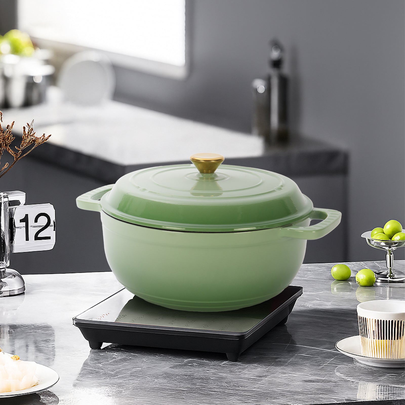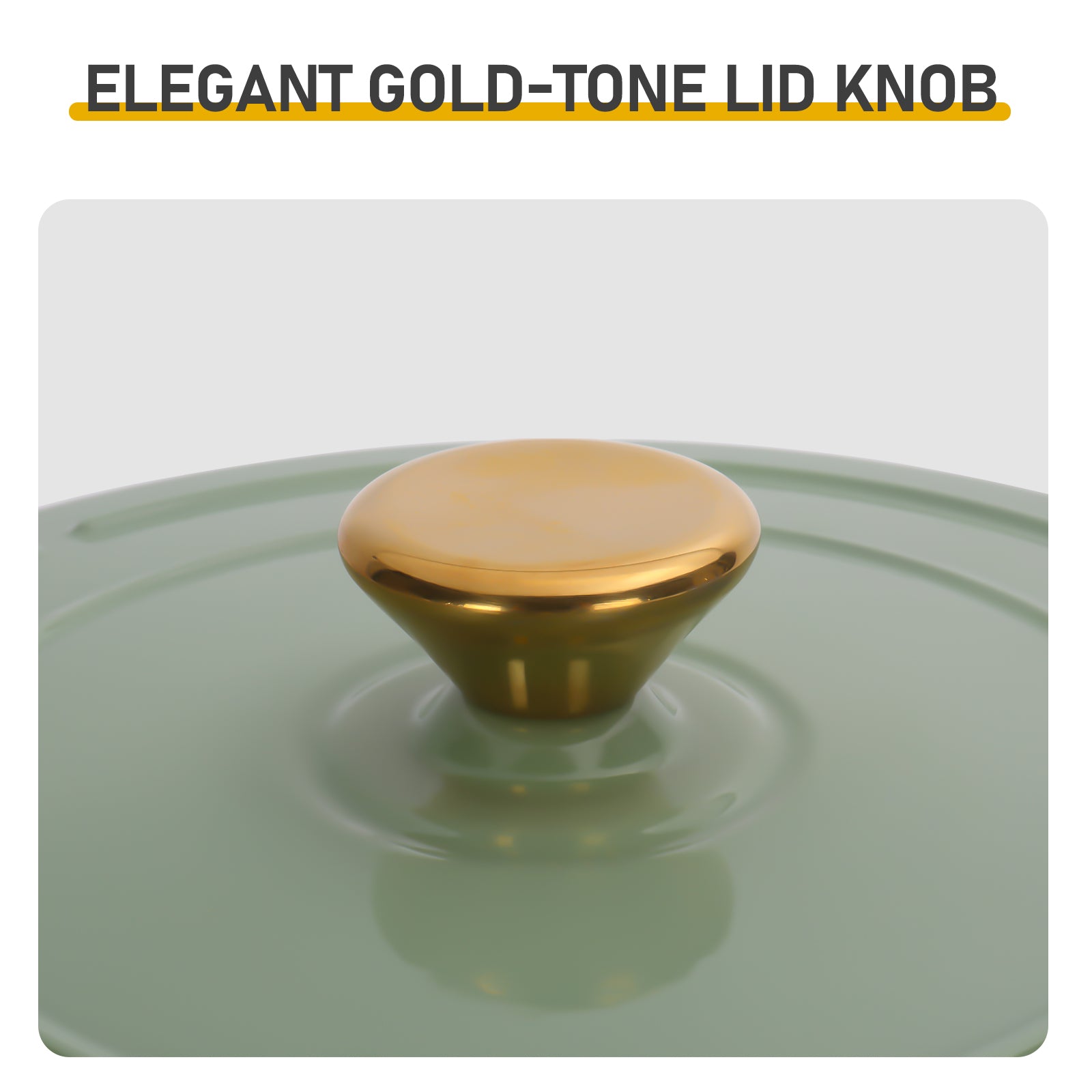 Gold-plated stainless steel knob and glossy enamel finish bring elegance and style to any kitchen while offering practical functionality.