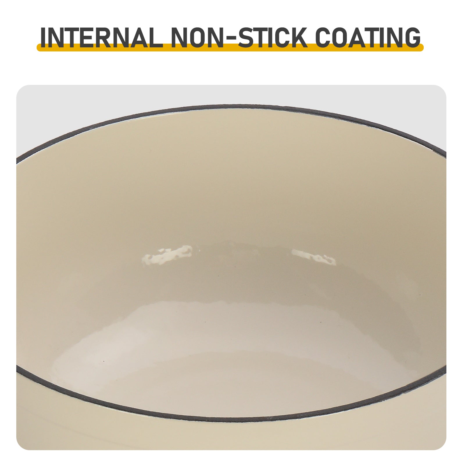 Made from thickened cast iron weighing 16 pounds, this 7.5-quart pot features a double-layer enamel coating with a high-gloss exterior and non-stick interior that resists stubborn stains. Its wide, stable base ensures tipping resistance, making it perfect for families of 7-8 people. FDA-certified enamel guarantees safe and reliable cooking.