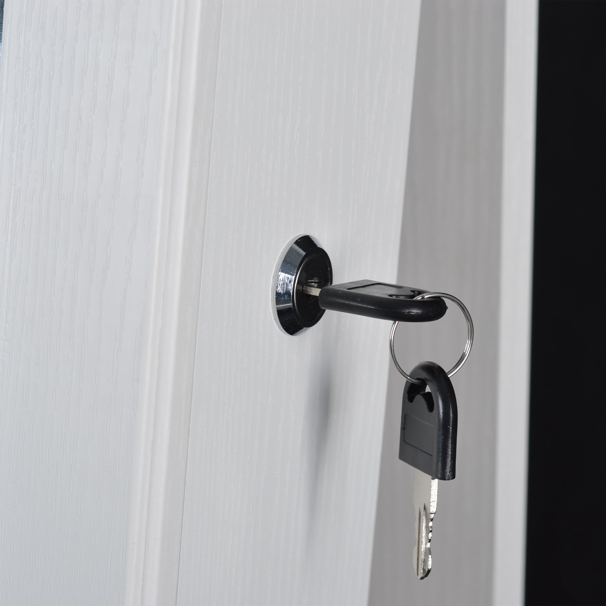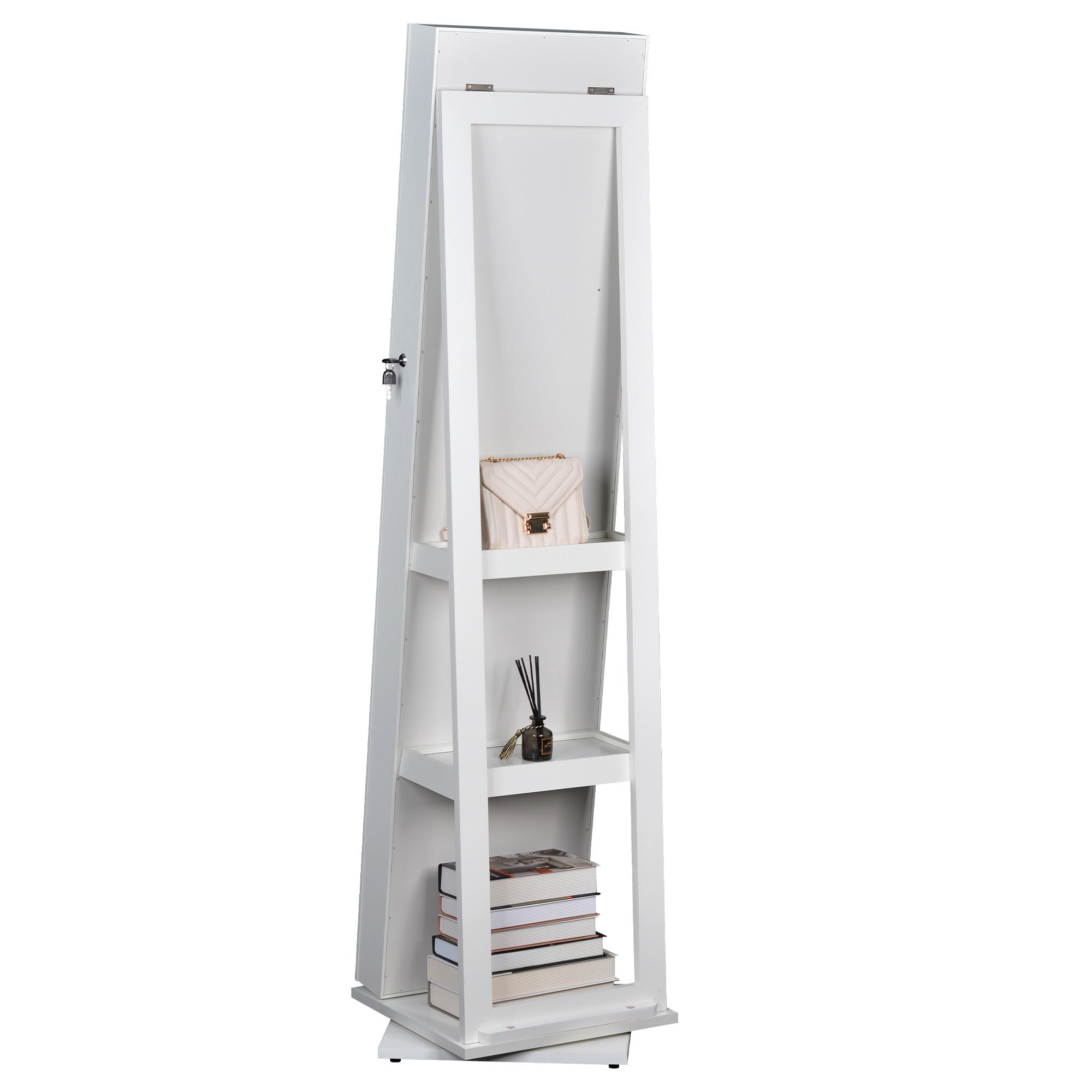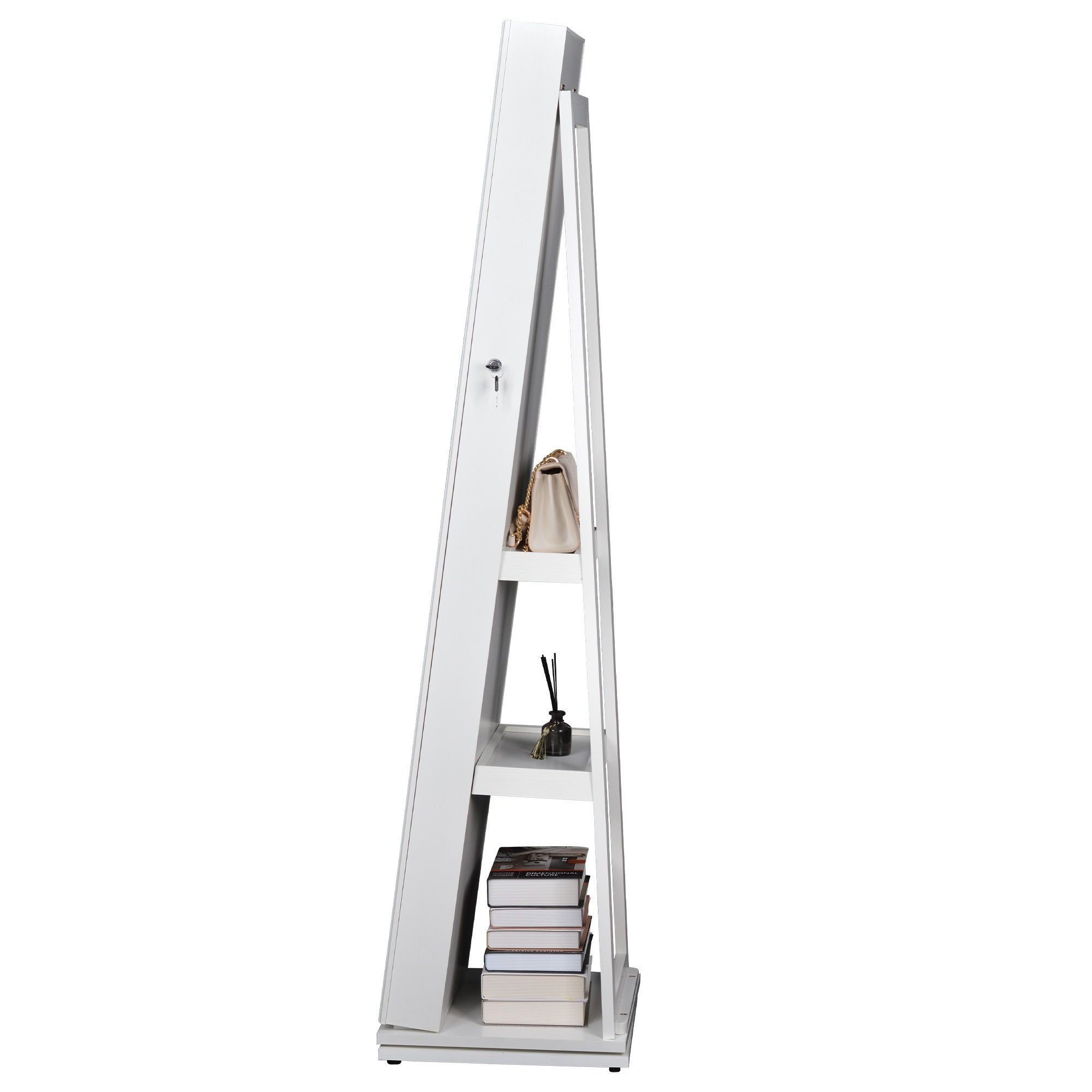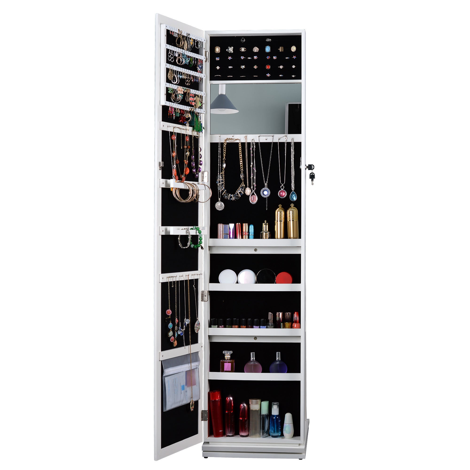 This full-length mirror cabinet is the perfect solution for anyone needing more storage—offering 22 necklace hooks, 2 cubes, 4 lined shelves, and a bracelet rod to store rings, earrings, and more.The secure key lock ensures your jewelry is safe and your privacy is protected. Its sleek, space-saving design fits in tight spaces, whether hung on a door, mounted on the wall, or displayed in a corner.