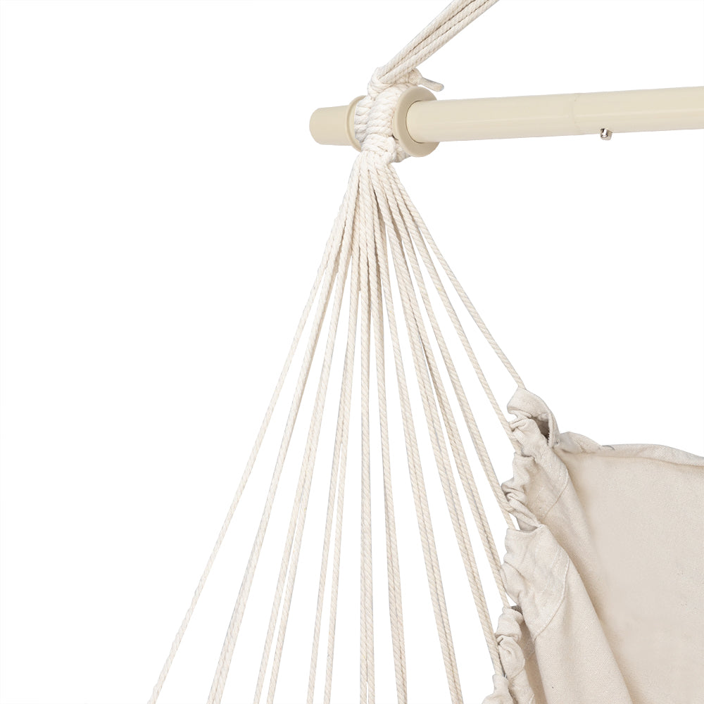 Create your own cozy oasis with the HAOYYE Cotton Canvas Hanging Rope Chair. Designed for comfort and elegance, this chair is perfect for unwinding indoors or out—whether on your porch, in your garden, or in a relaxing reading corner at home.