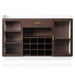 Features a single drawer, two glass doors, and a built-in wine rack for up to 12 bottles, offering organized storage for dining room essentials.