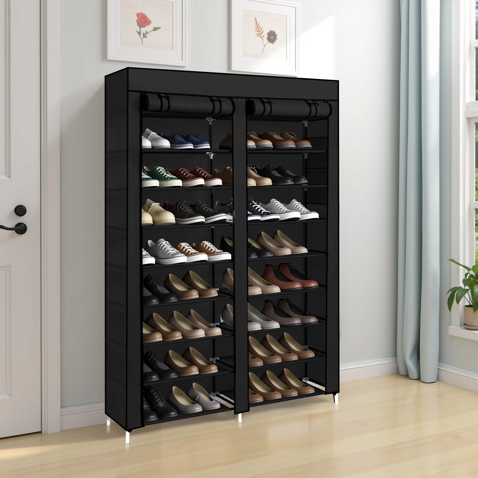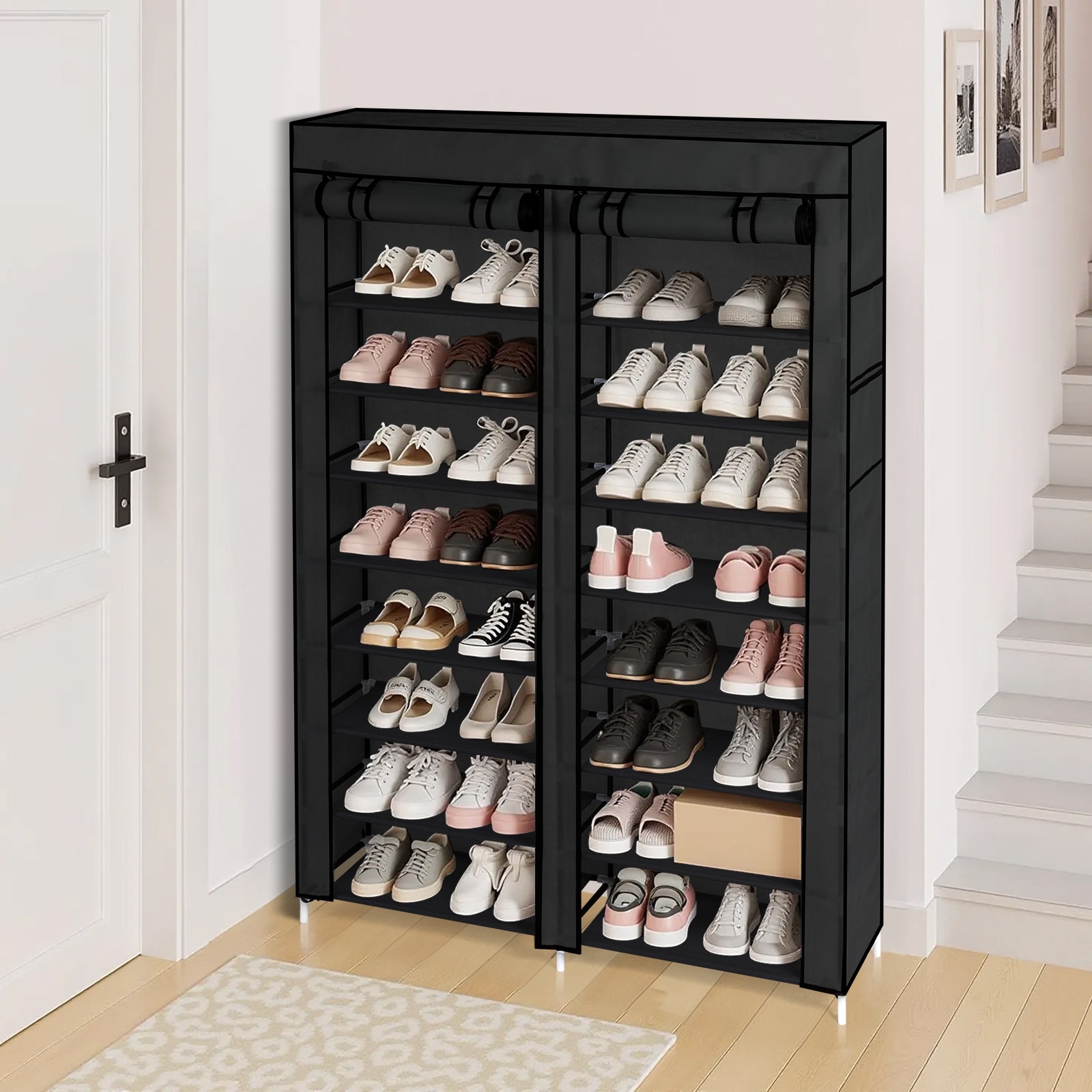This double row 10-tier shoe cabinet offers ample storage space to keep your footwear neatly organized and out of sight right at your entryway.