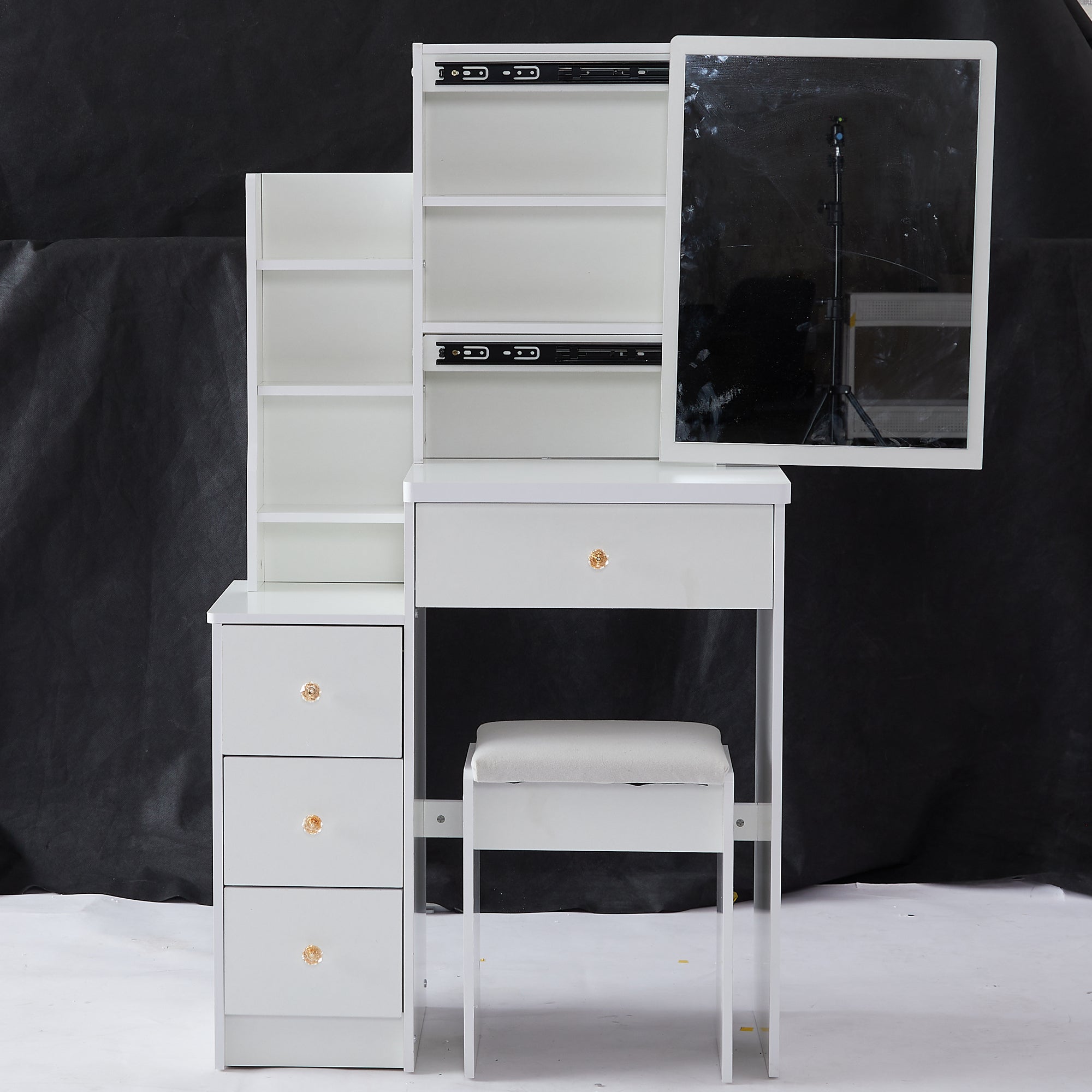 With dimensions of 29.2" length and 50.4" height, this vanity table set is specifically designed for small bedrooms. Its compact size makes it perfect for tight spaces without sacrificing functionality.