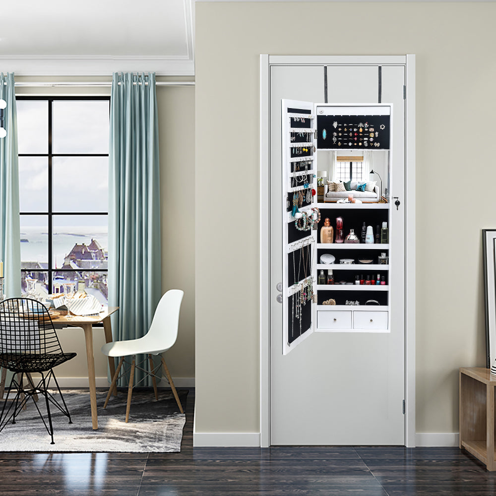 Lockable design with wall or door mounting keeps your jewelry secure while optimizing space in your bedroom or dressing area.