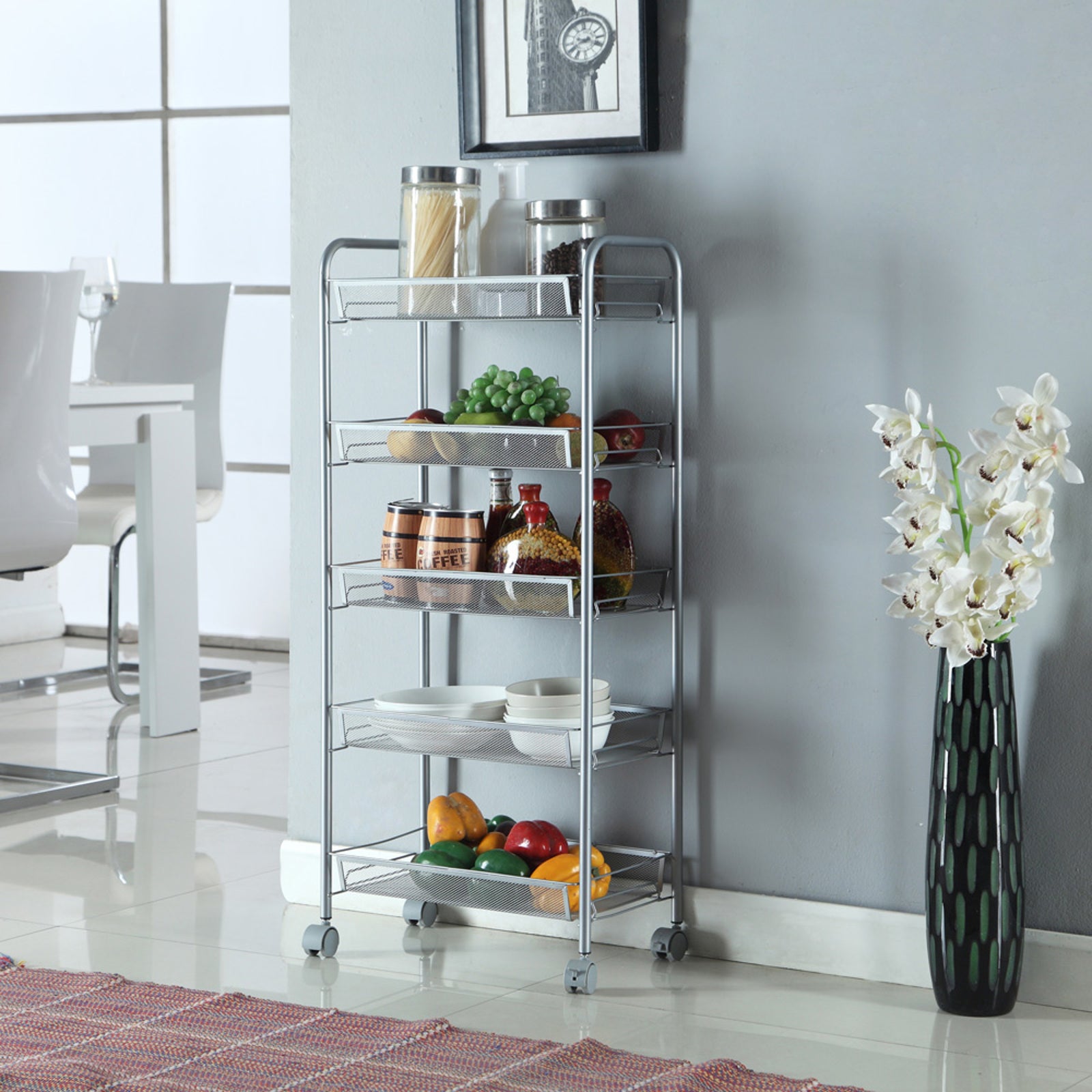 With five spacious layers, this cart provides plenty of room for organizing various gadgets, toiletries, or kitchenware, making it an ideal storage solution for any space.