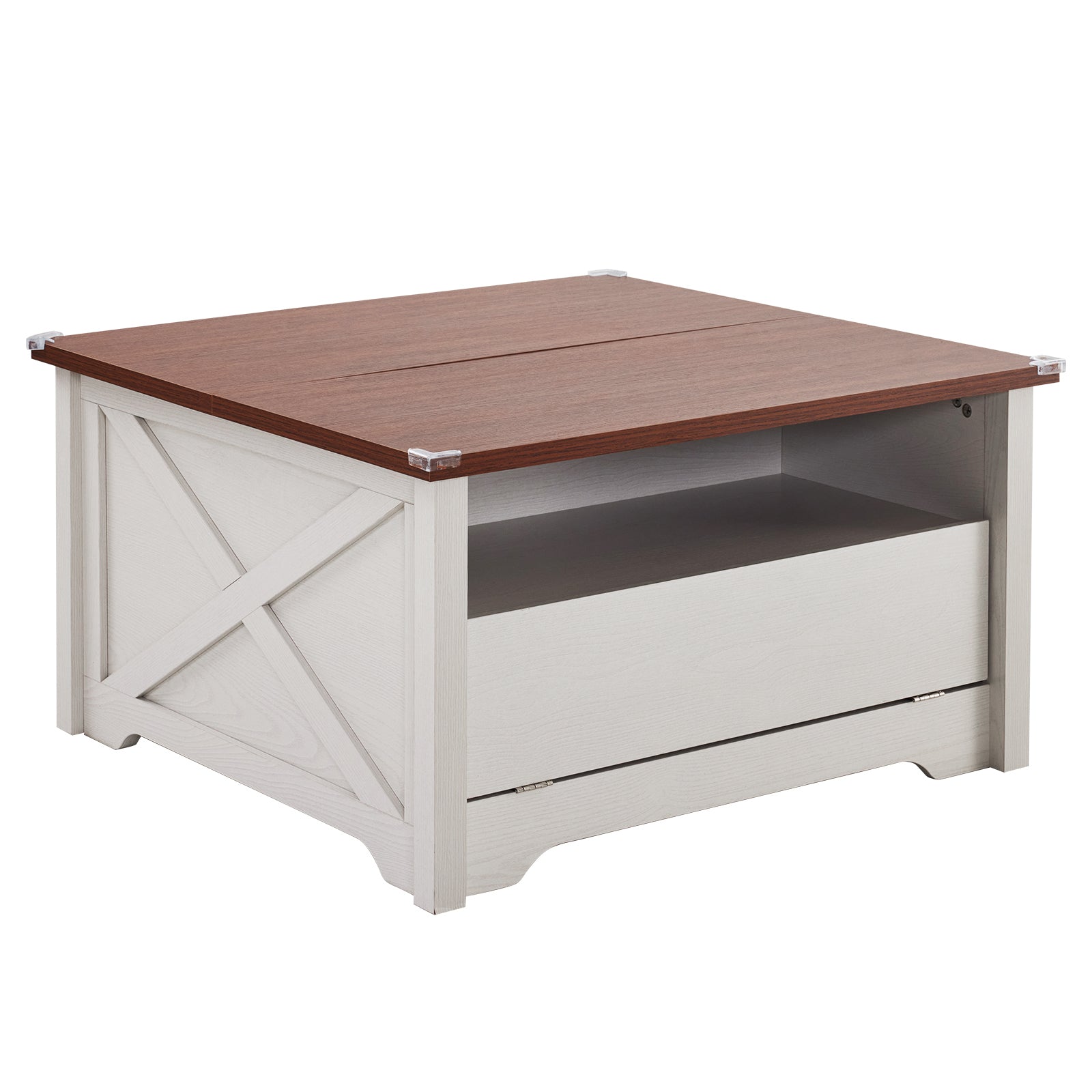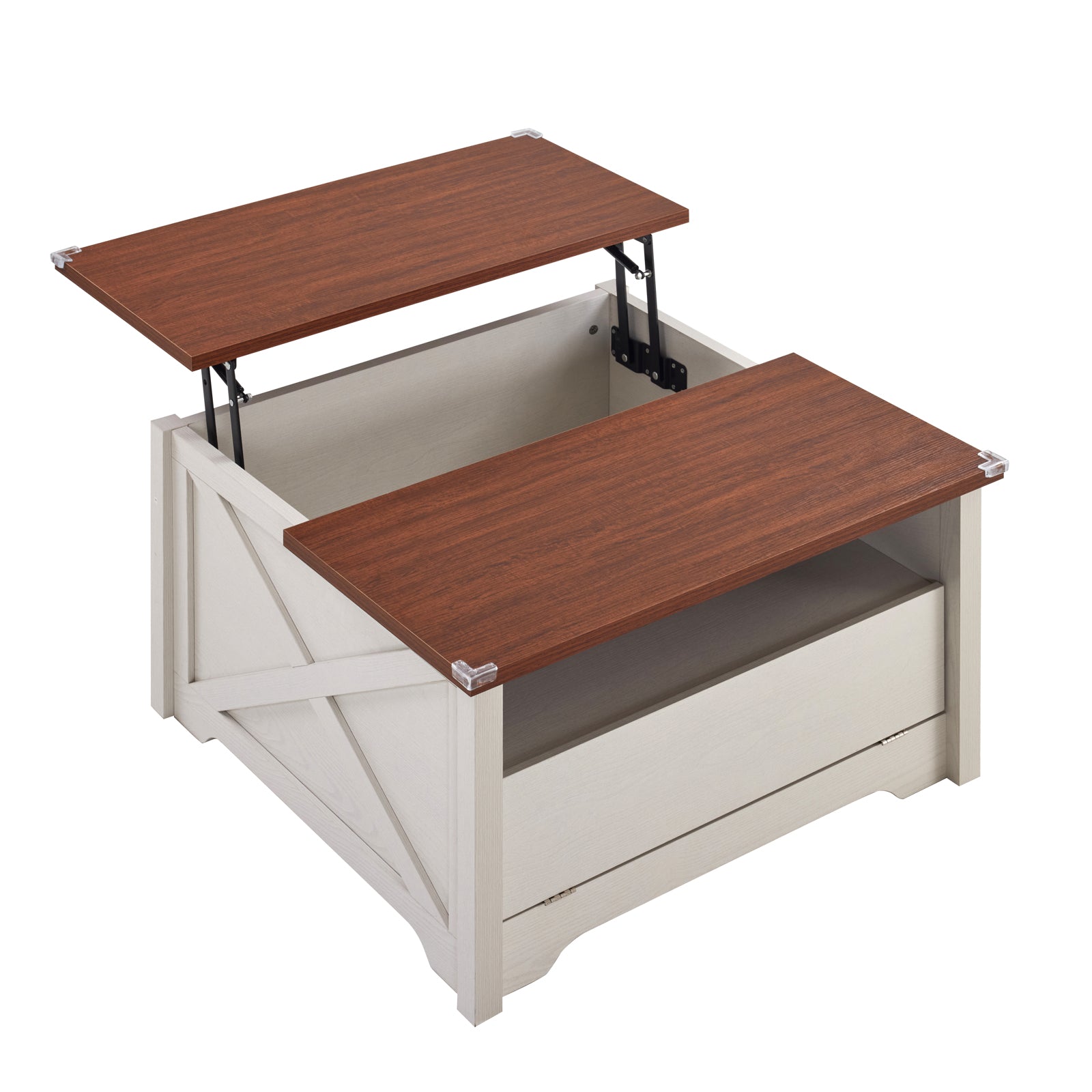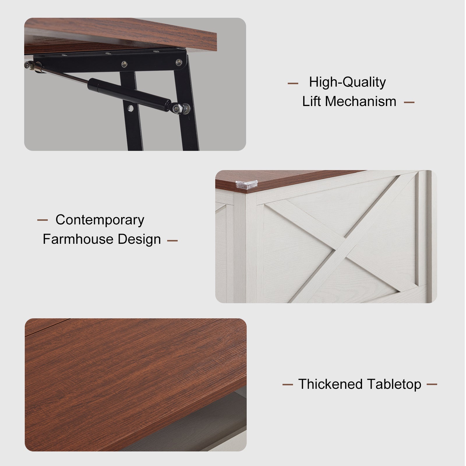 The lift-top feature reveals a spacious hidden storage compartment, perfect for stashing remote controls, magazines, or other items you want to keep out of sight. The rustic wood finish adds a charming farmhouse touch, while the sturdy construction ensures durability for everyday use.