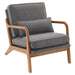 The oak upholstery and clean lines complement any decor, adding a touch of elegance to your living room, bedroom, or office space while serving as a comfortable spot to unwind.