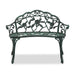 Featuring an antique green finish and intricate rose patterns, this bench brings a timeless, vintage aesthetic to any outdoor setting, adding charm to your garden or porch.